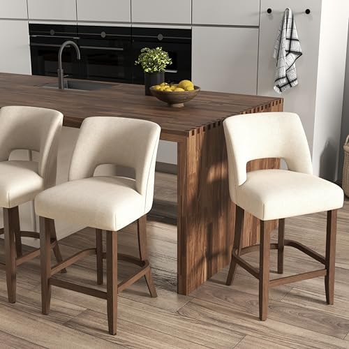 VKNOW Bar Stools Set of 4,Upholstered Counter Height Bar Stools,Modern Counter Stools with Wood Legs for Kitchen Island Dining Room Bar,Beige